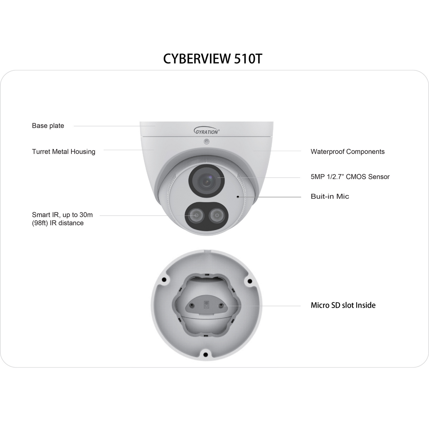 | CyberView 510T | 5 MP Outdoor Intelligent Fixed Turret Camera | 744390952357 | 5.2 x 5.2 x 5.3 Inch | 2.4 lbs | 16 |
