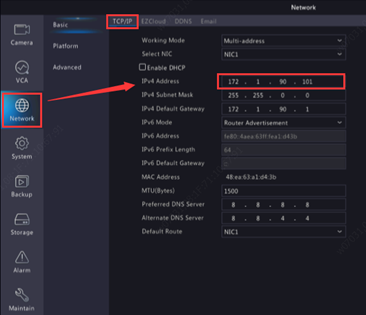 The IP address of NVR can be found in 【Network】>【TCP/IP】