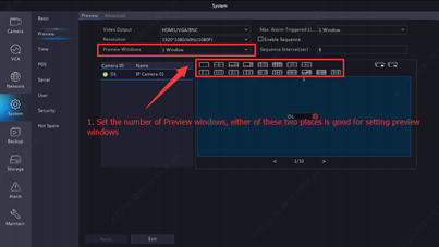 Step 2. Set preview windows, which refers to the multiple windows layout displayed on monitor live view.
