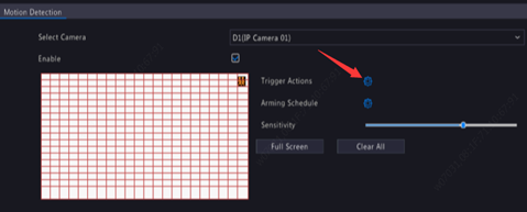 Step 2. Configure motion detection recording: click right to Trigger Actions, click the Recording tab, select the desired camera, and then click OK.